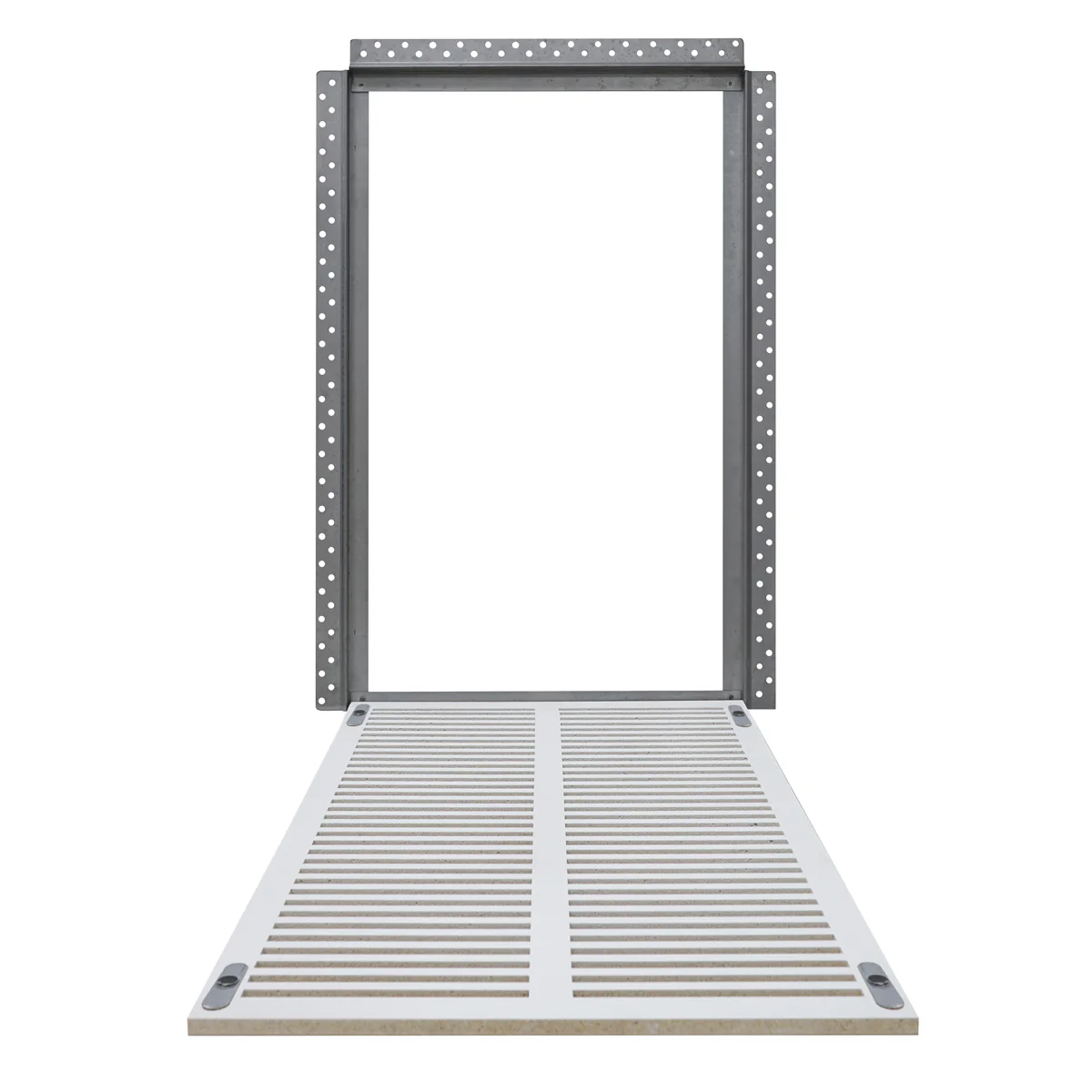 - Metal frame screws onto the face of your drywall